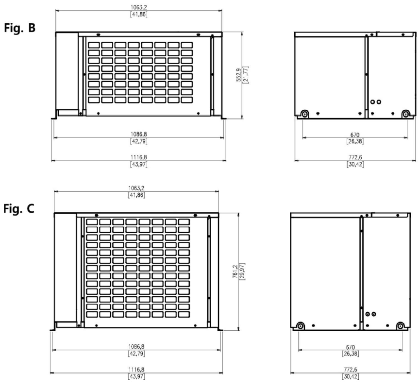 Oversized fin and tube condenser coil – The traditional oversized fin and copper tube condenser coil ensures high efficiency and easy maintenance.